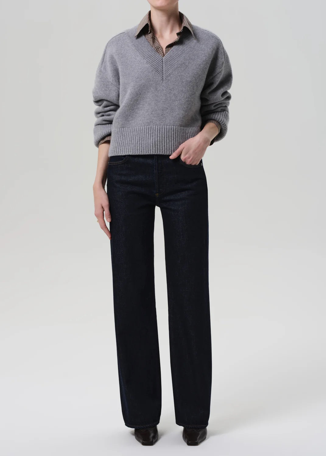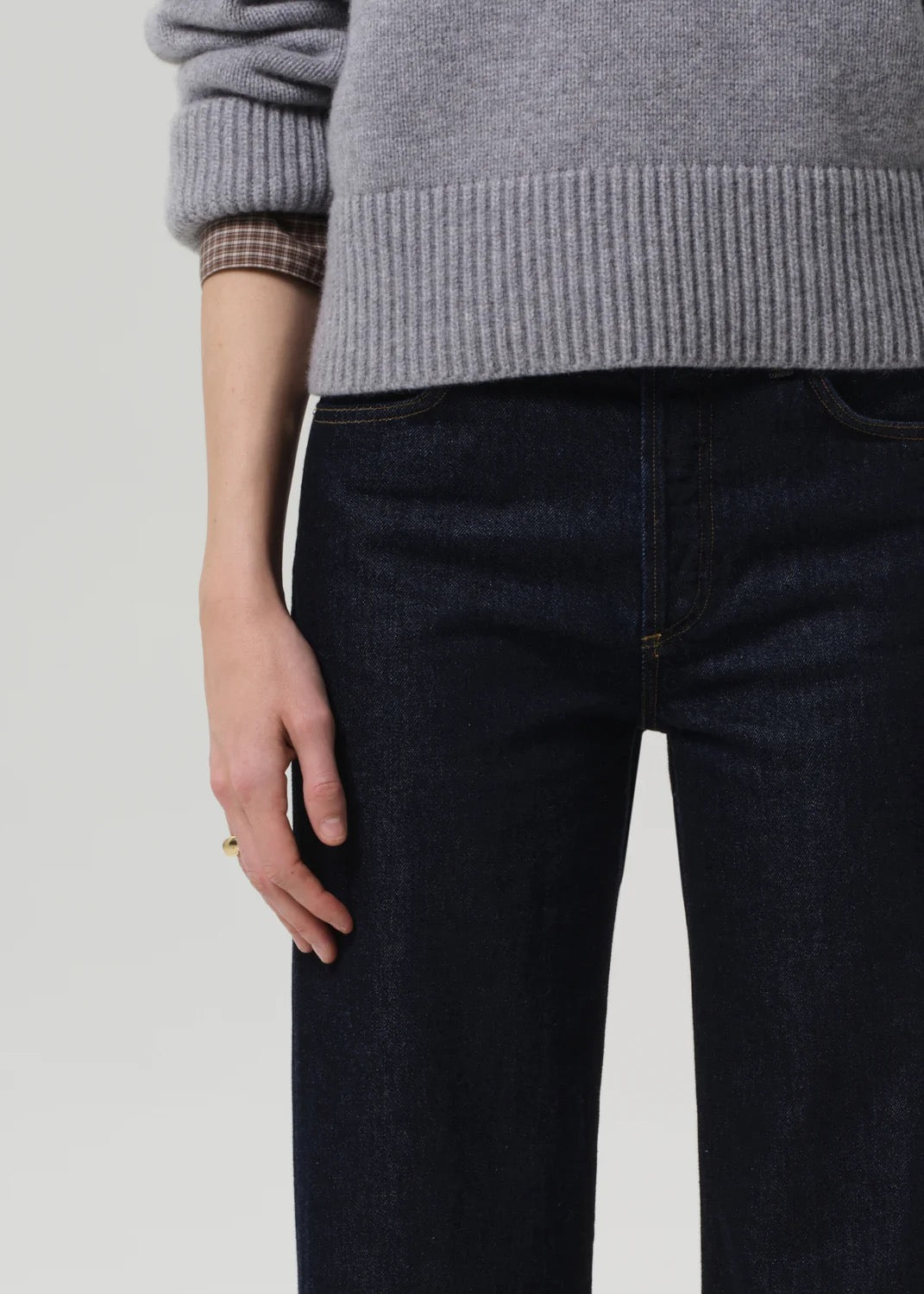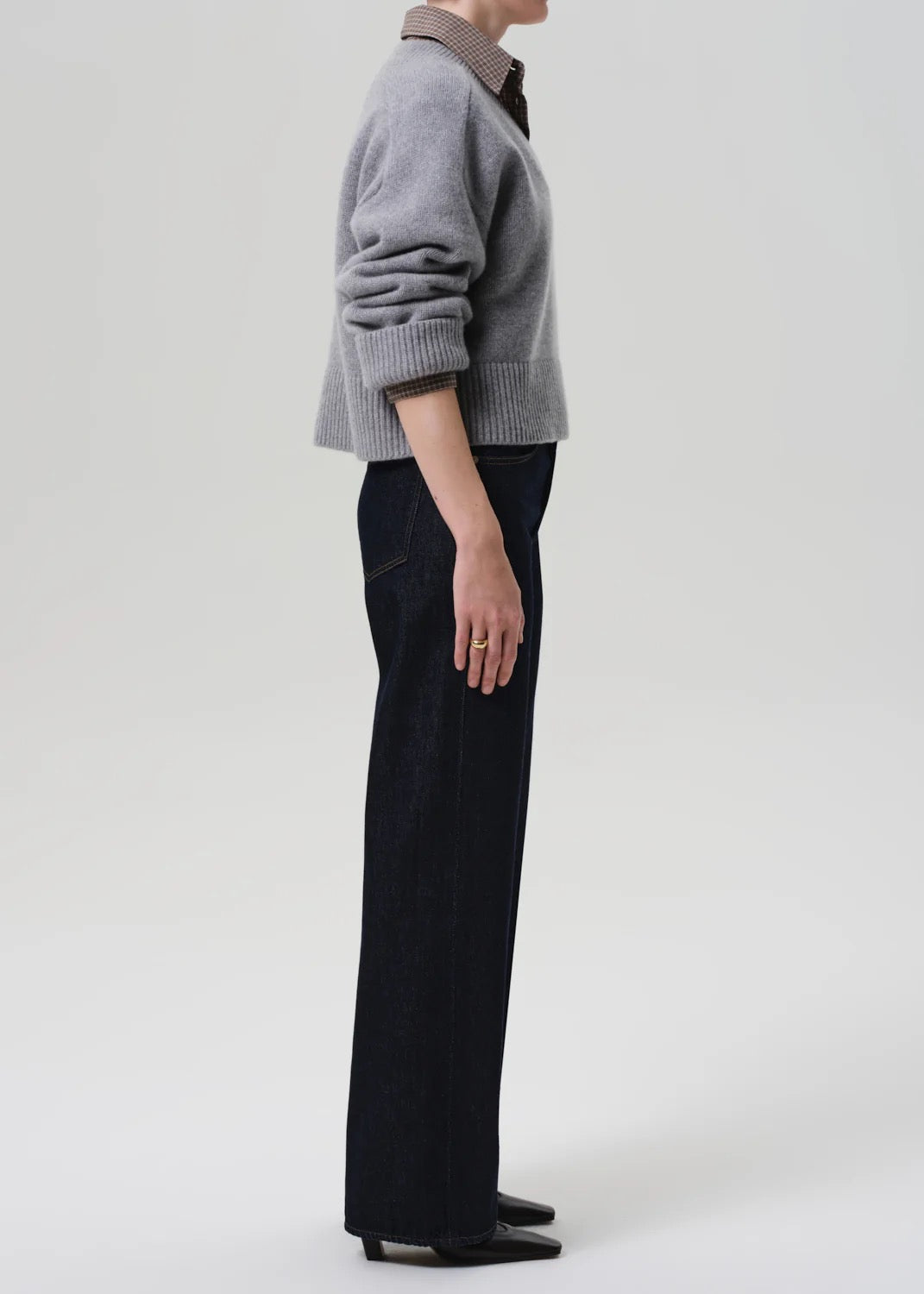 Designed with a high rise and full-length 33" inseam, the ‘Annina’ jean offers an elongated, wide-leg silhouette with a refined drape. The ‘Juno’ wash—a clean, deep indigo—is crafted from weightless, non-stretch regenerative denim washed down for an exceptionally soft feel. Style with an oversized blazer or tucked-in knit for understated polish.