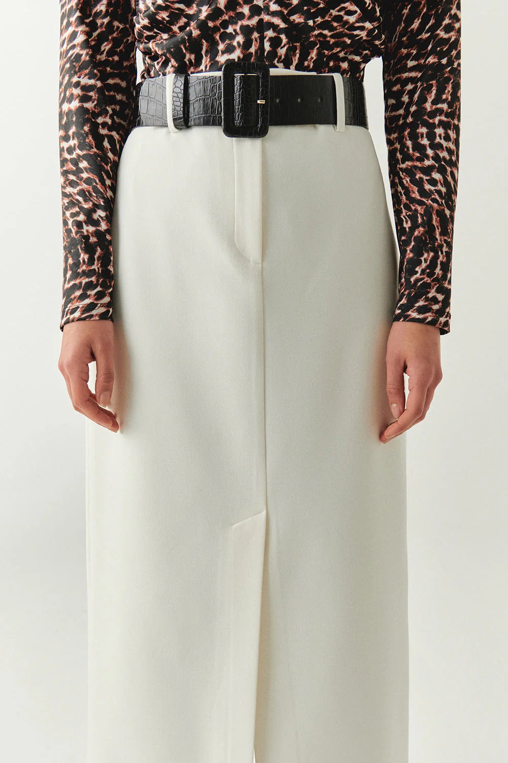 Color: Ecru | Length: Midi | Waistline: Fixed with Belt