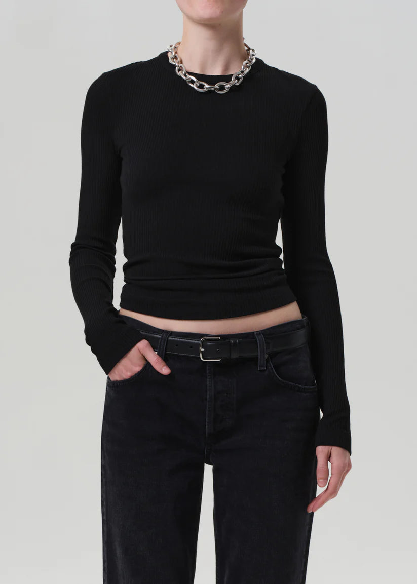 An elevated everyday essential, the Bina Crewneck is crafted from super-soft sweater rib with the perfect hint of stretch. Ideal for layering or wearing solo with denim or soft tailoring.