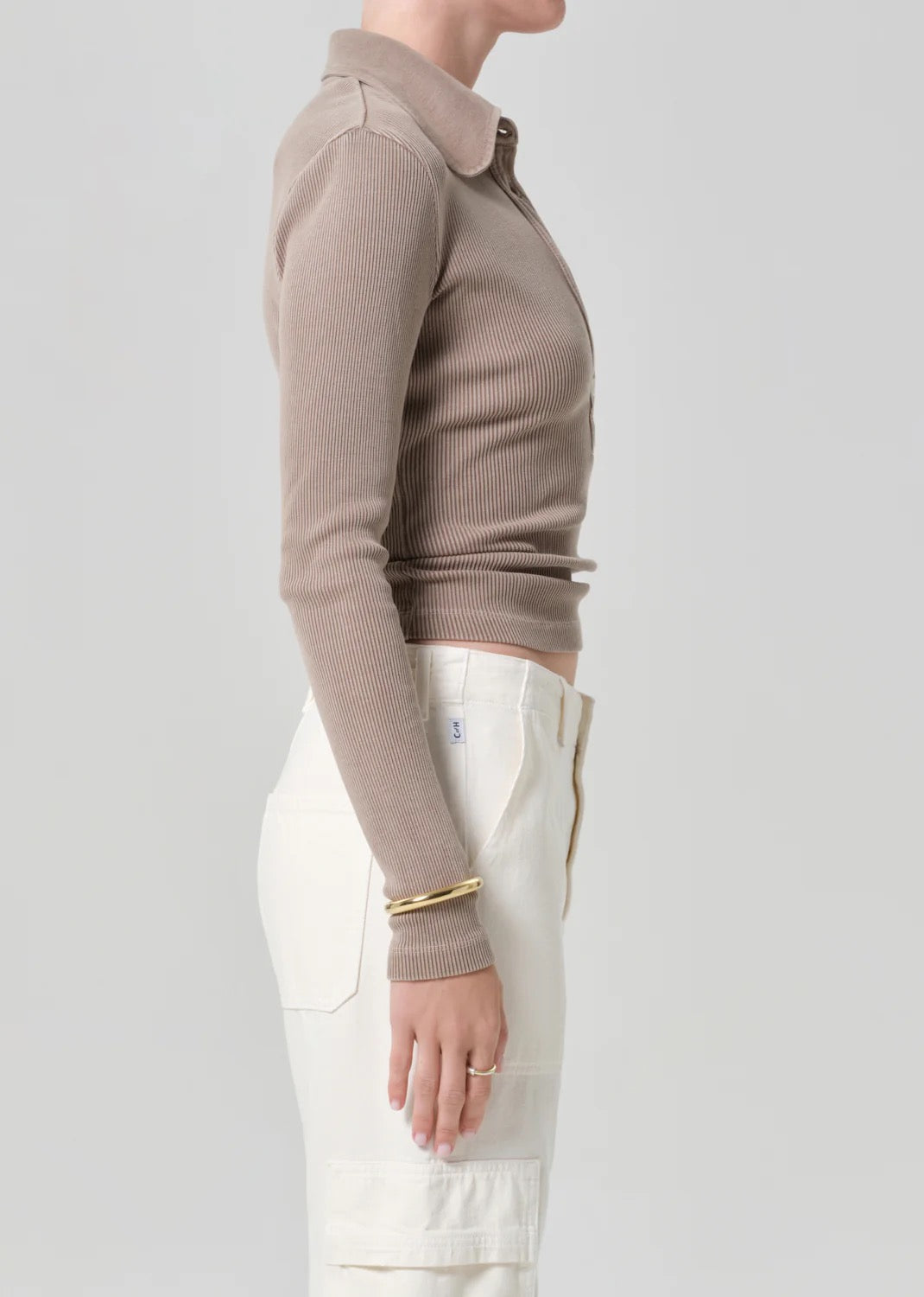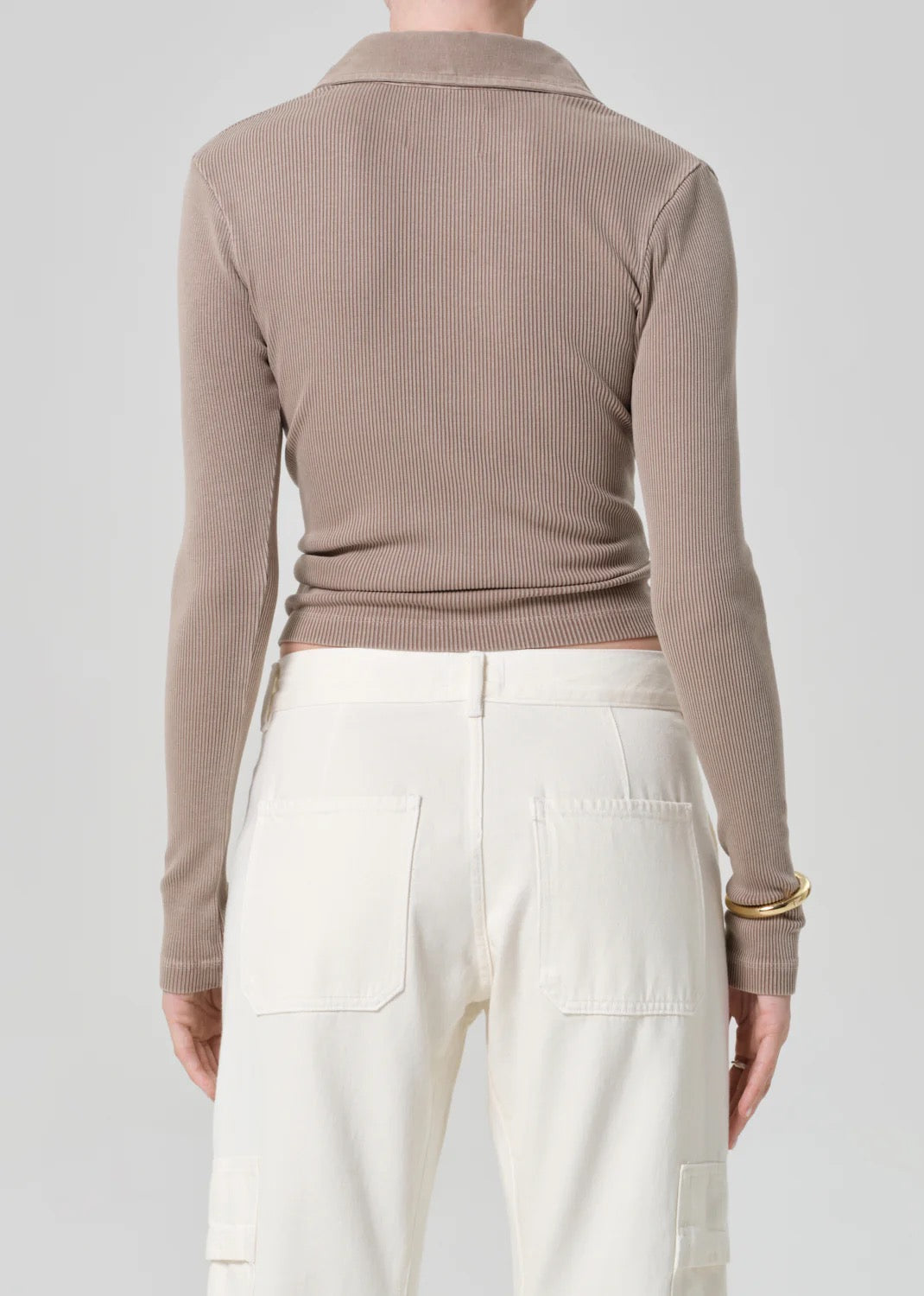 A modern nod to a vintage classic, the Brea 60’s Polo is crafted from ultra-soft, supportive ribbed cotton with a comfortable midweight feel. The long-sleeve silhouette and collared neckline bring effortless structure—perfect tucked into high-rise denim or layered under a blazer for refined ease.