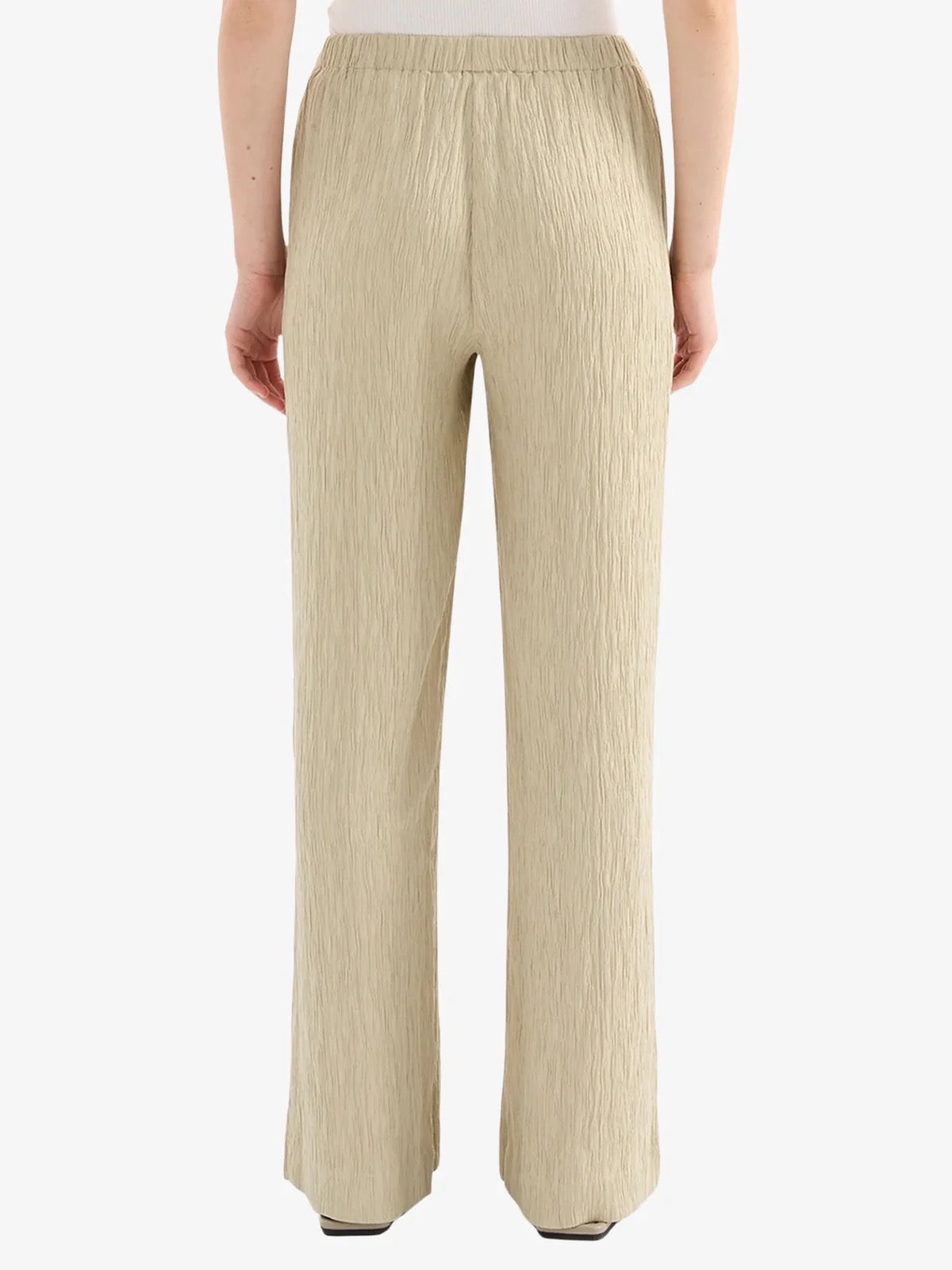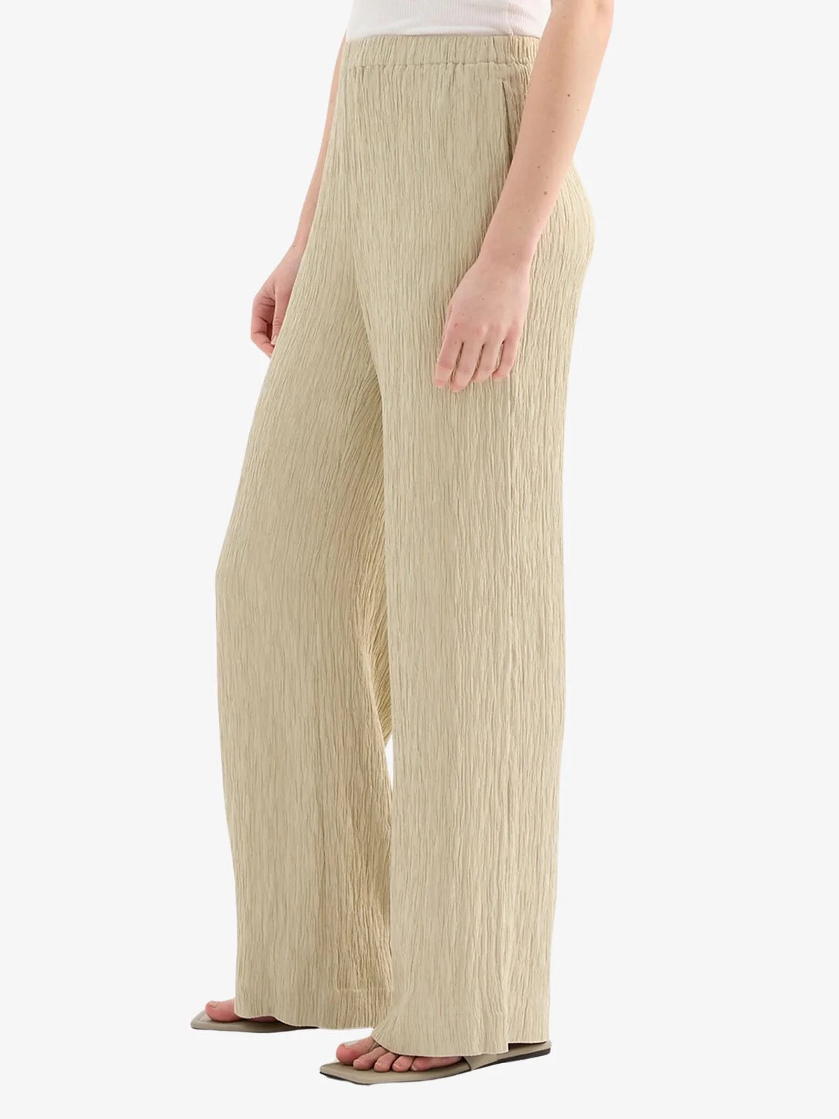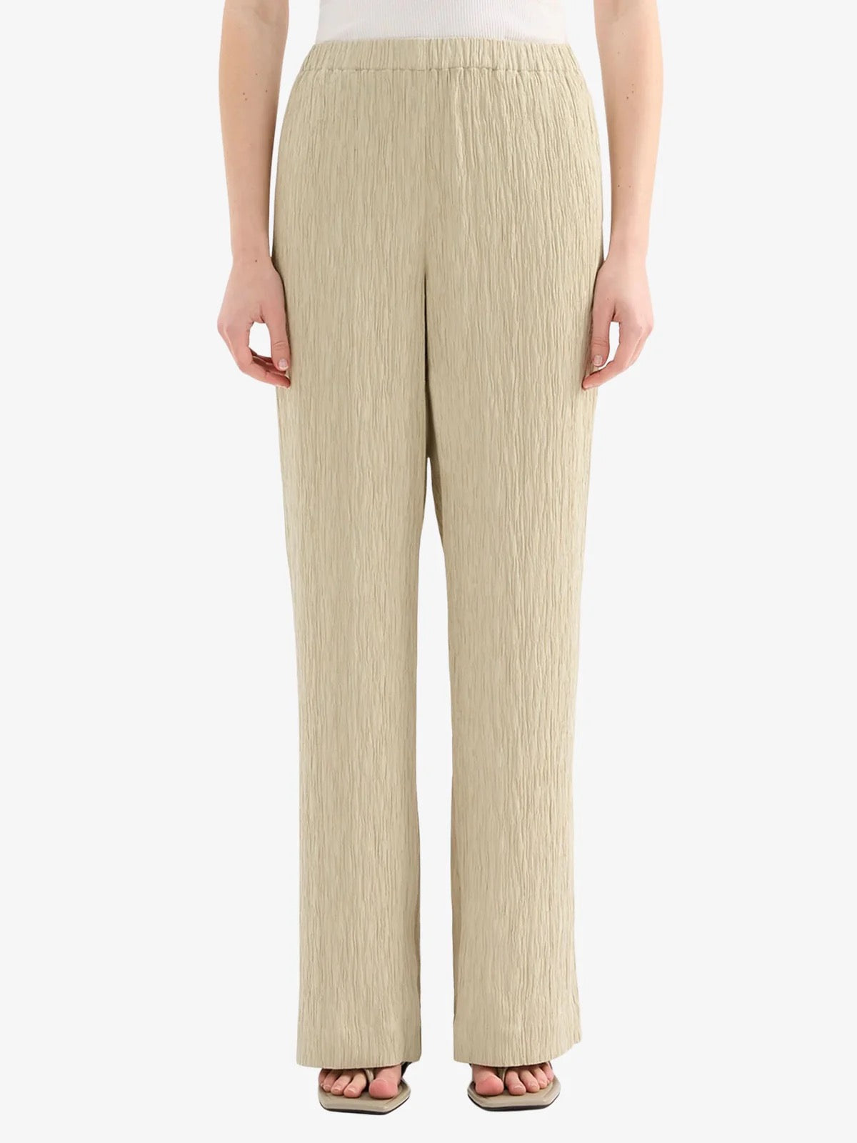 The Danika Pant is made from a crinkle textured fabric which has a dry, lightweight hand feel. The silhouette is relaxed with a straight, full length leg. Features include an elasticated waistband and side seam pockets.