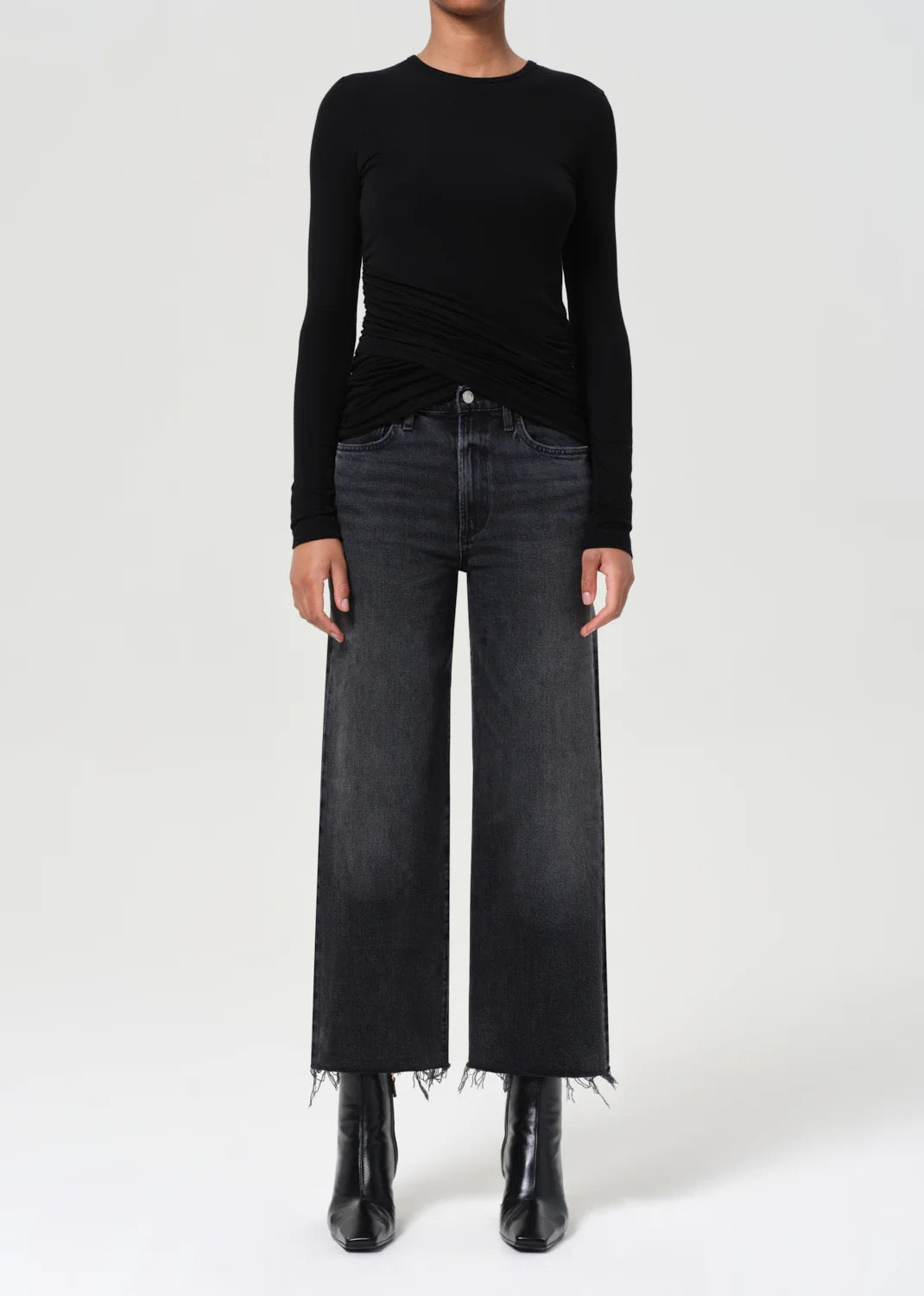 The Harper Crop is the kind of jean you'll reach for on repeat. Cut from comfort-stretch denim in a washed-out black, this mid-rise style features a relaxed straight leg and softly worn-in finish. Cropped at the ankle for easy styling—just add a tee and sandals, and you're set.