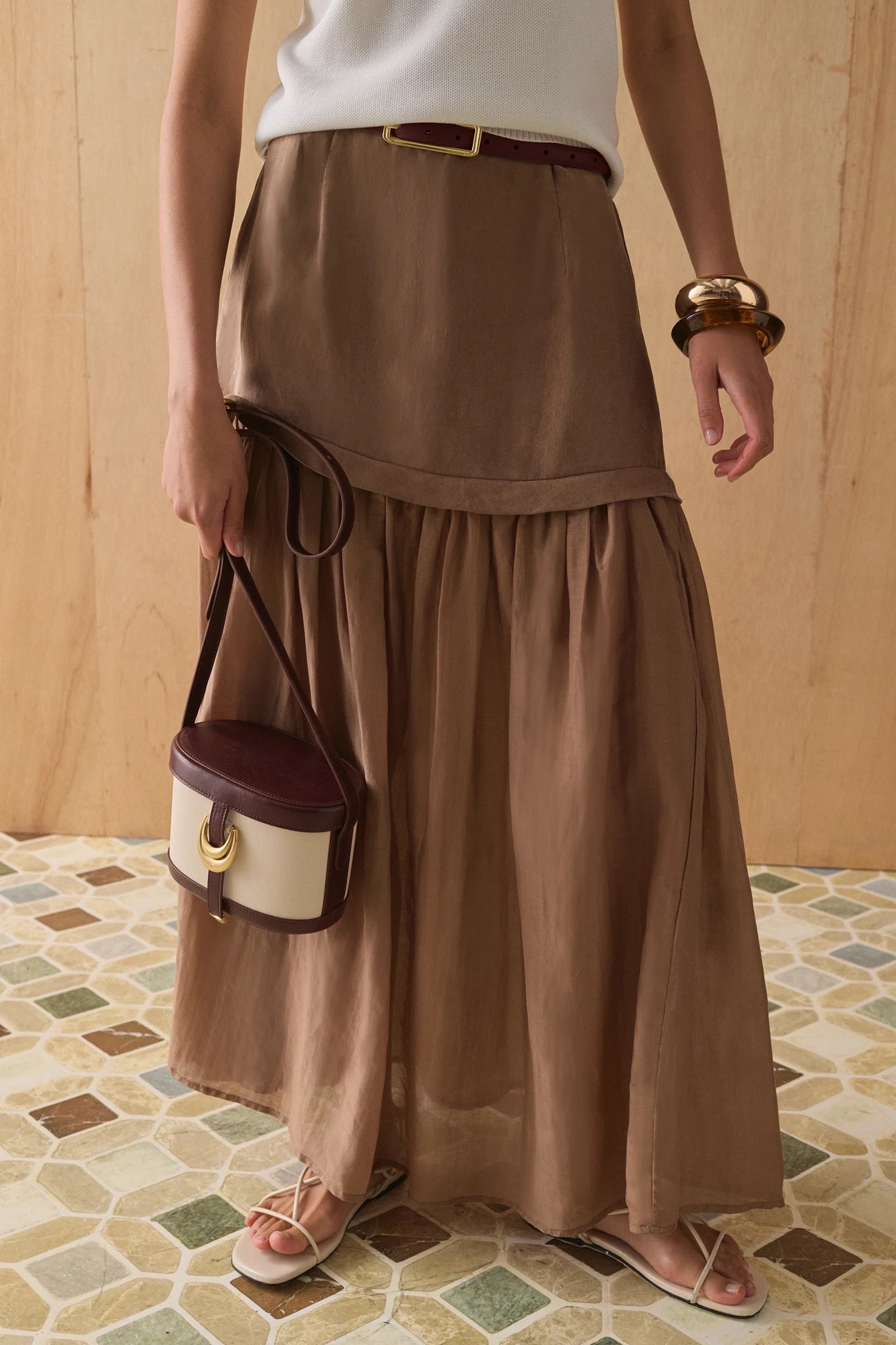 Simplicity meets elegance with our all-new Isla Skirt. This double tiered maxi skirt embodies chic dressing with a gorgeous sheer silk/cotton panel. Style with a simple knit tank or a silk satin shirt for that model off-duty look.