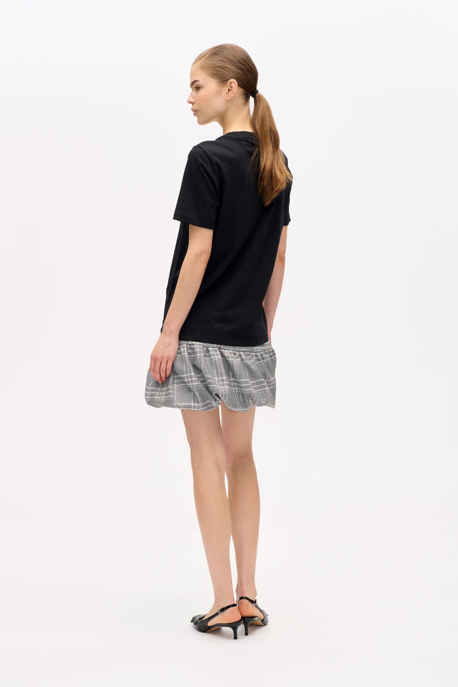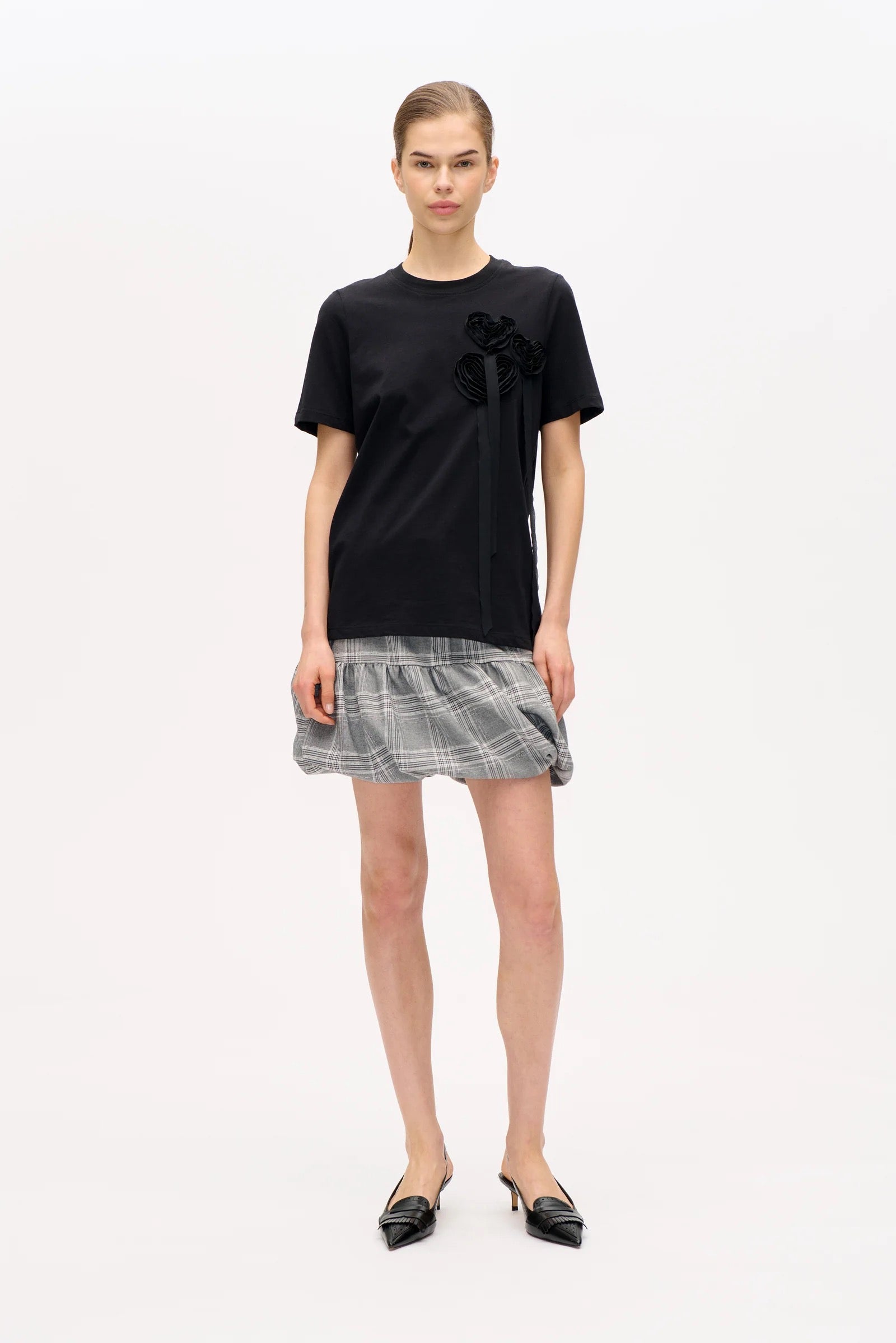The Jawi T-shirt has beautiful heart-shaped rosettes at the chest with flowing pieces of fabric to add a charming touch to the otherwise basic tee. The short-sleeved t-shirt is made in soft organic cotton jersey and has a relaxed fit with crew neck. Make it a daily favorite and style it with one of our trousers or jeans.