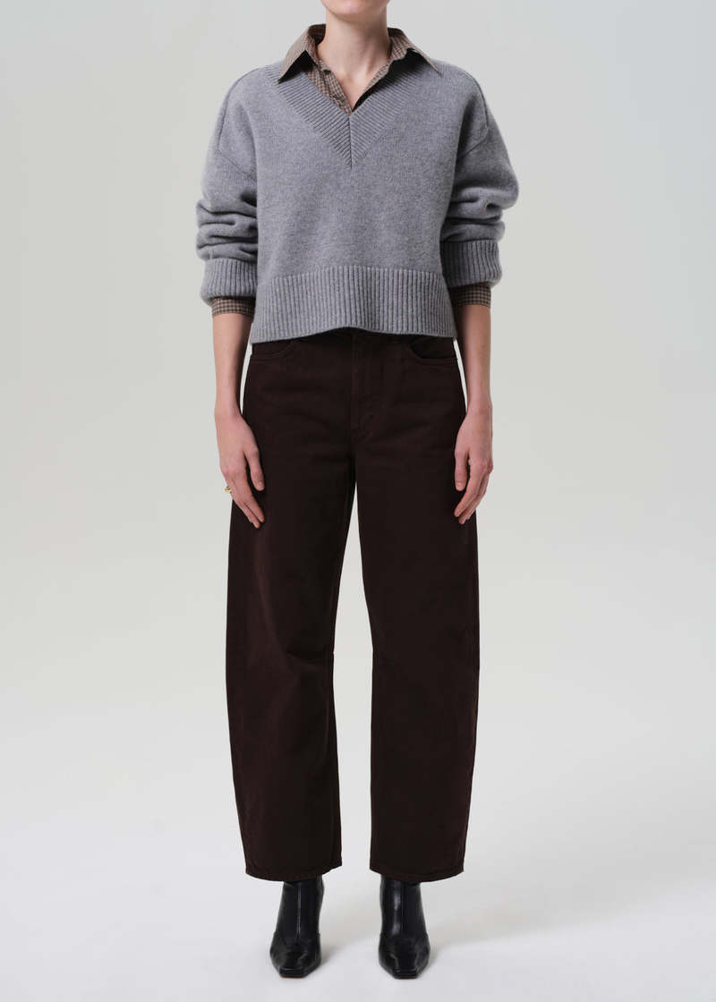 The ‘Miro’ is a refined take on the barrel silhouette, designed to sit high on the waist with a relaxed taper through the leg. The rich Carob wash offers a clean, tonal finish—style with crisp shirting or tonal knits for a refined take on relaxed.