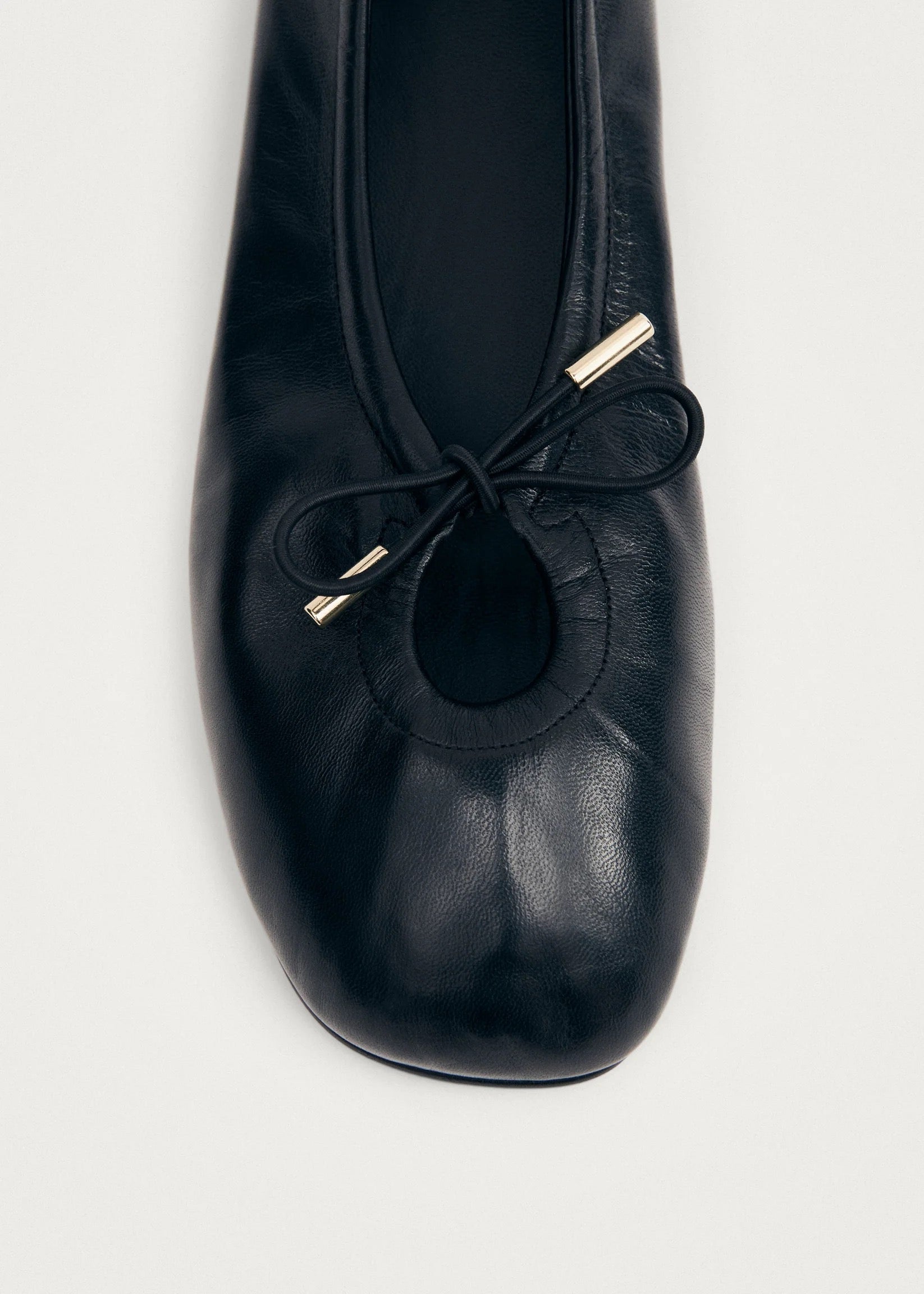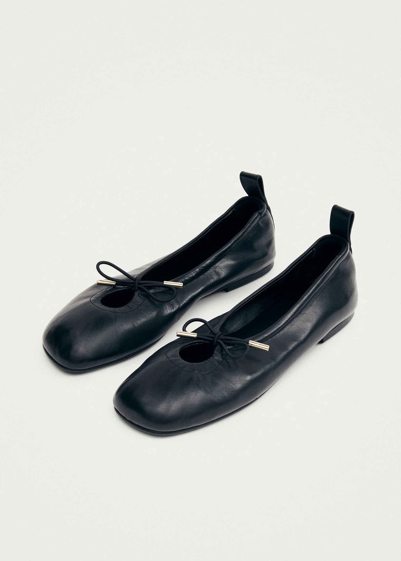 Rosalind is a stretchy ballet flat with unlined uppers threaded with a drawstring. Crafted from soft black leather, this pair features an elasticized back and flexible soles, making them easy on the feet. So comfy, you could wear them around the house - except they’re too cute to be kept indoors.