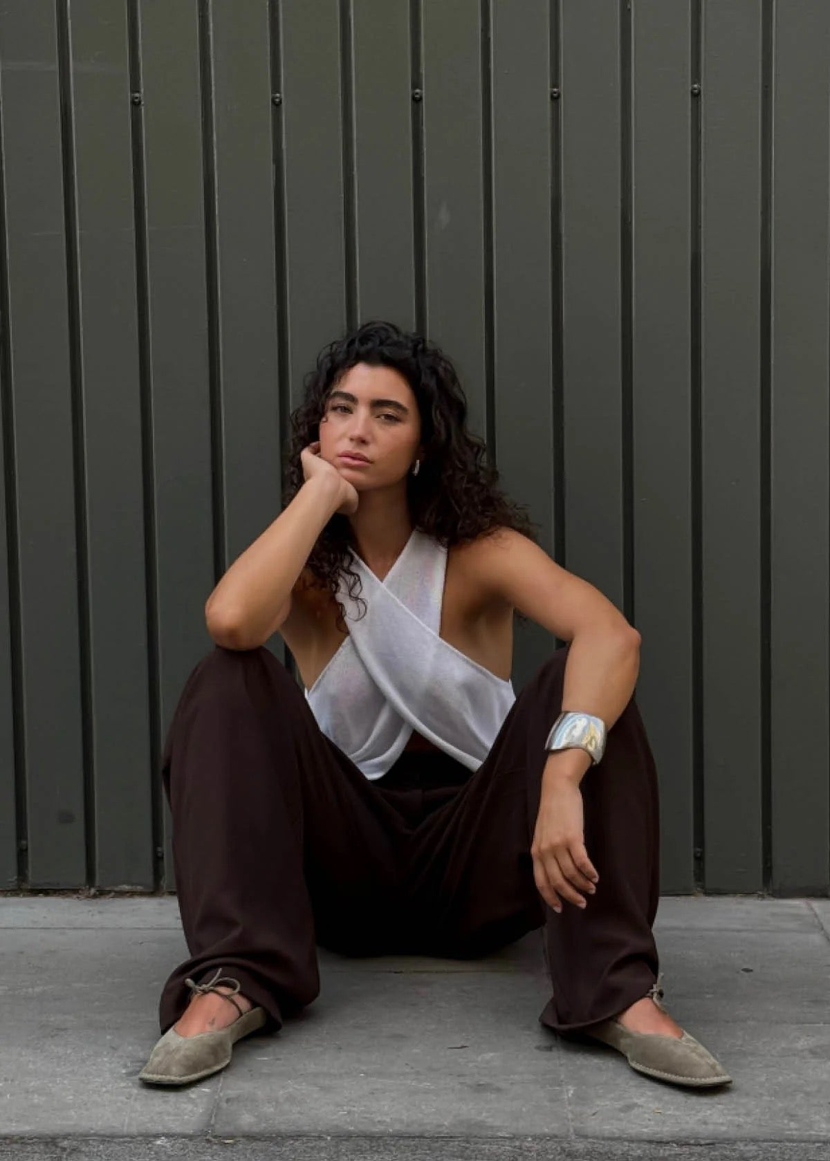 The Sway ballet flats, a timeless classic, have been updated this season with a refined khaki suede finish. Featuring a square toe and distinctive V-shaped vamps, they are secured with a bow across the instep. This refreshed design provides a versatile touch to any ensemble.