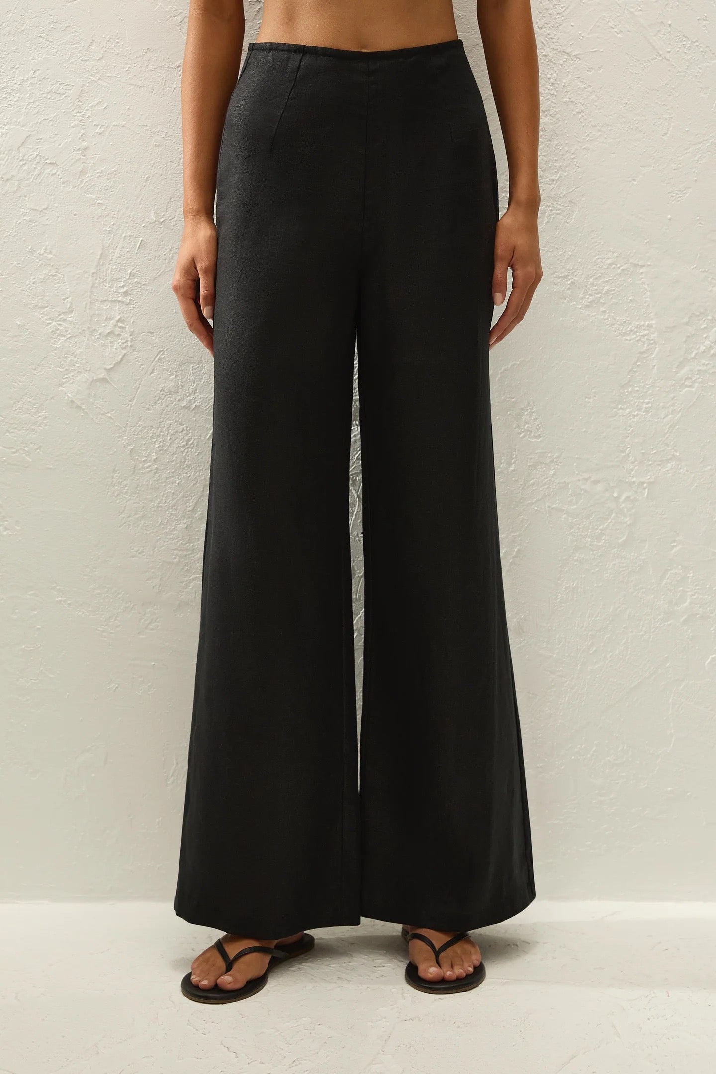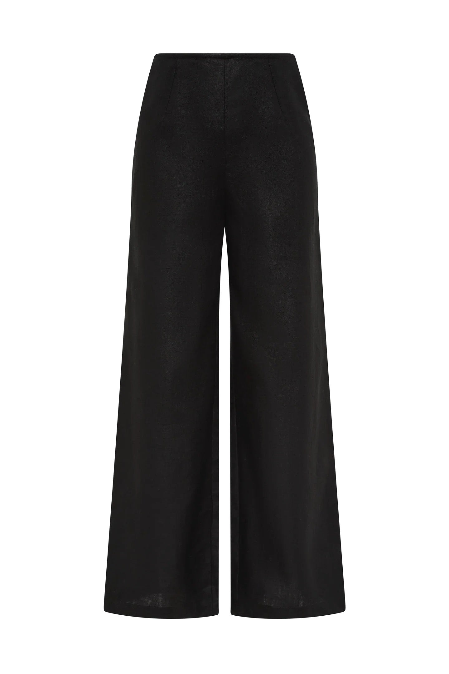 A softly tailored high-rise pant, designed from a signature 100% European Flax® linen in a classic black. Fitted through the waist with a smooth front, they fall into a refined, yet relaxed wide leg that flares at the hem and crops around the ankles. Style with a matching top for an elevated approach to linen set dressing.
