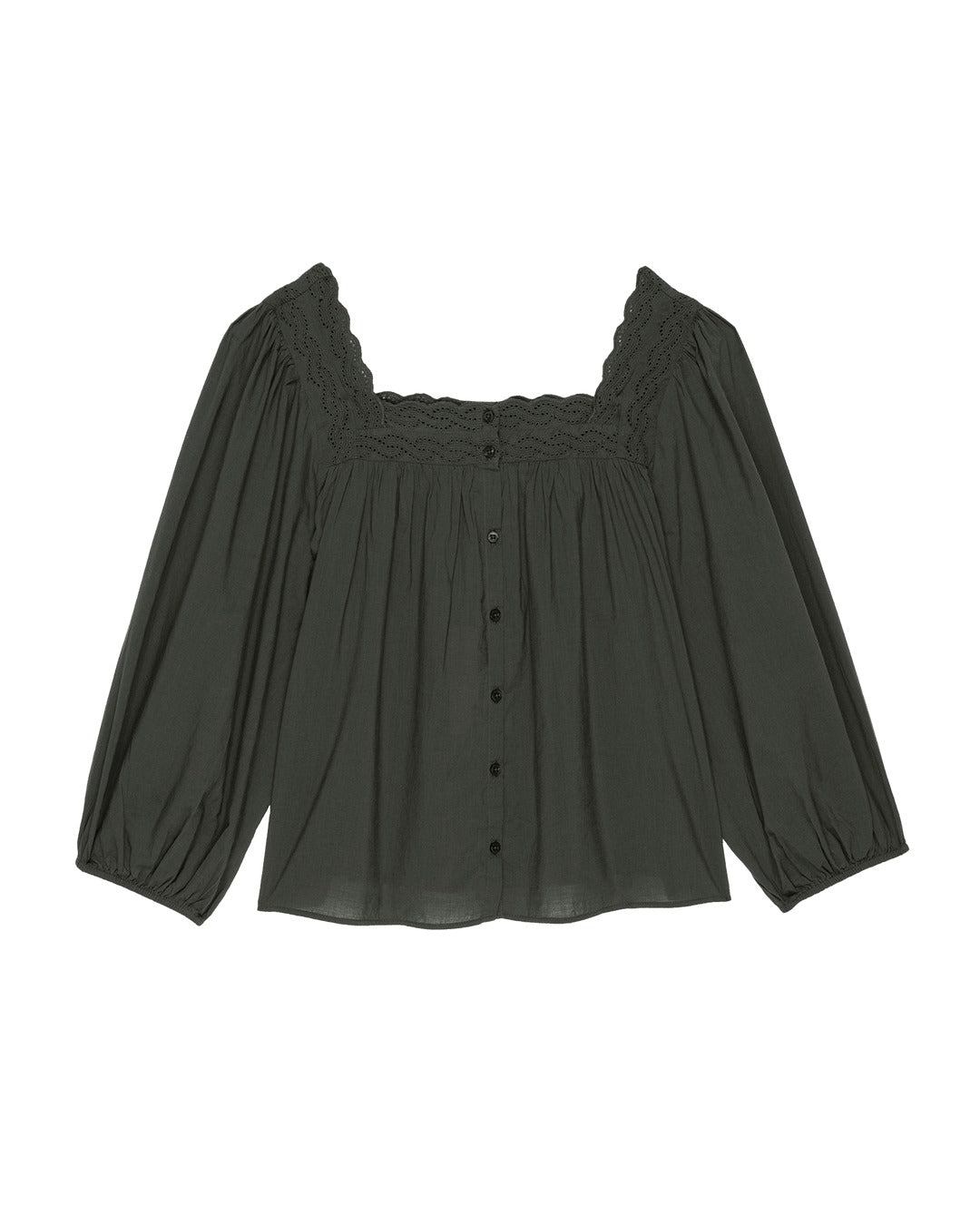 The Eyelet Button Sleep Top. is a romantic addition to your sleepwear collection. Crafted from supersoft and lightweight cotton voile fabric, the top is adorned with a Victorian-inspired eyelet lace trim and finished with a delicate scalloped edge. This top was designed to fit easy through the body for added comfort and features elasticated sleeve openings with delicate volume and dainty buttons up the front.